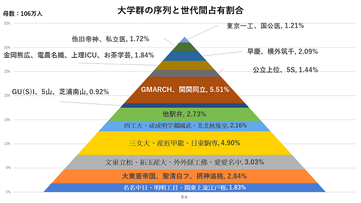 表:大å¦ç¾¤ã¨ä¸–代ã«å ã‚る割åˆ