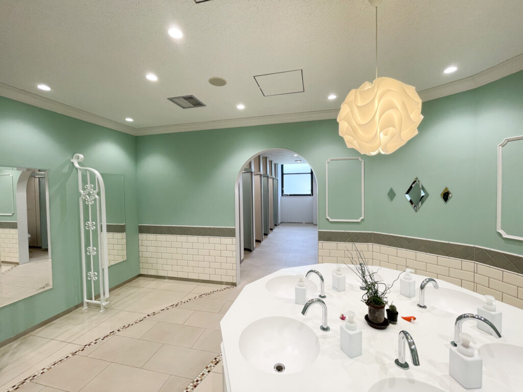 - æœ¬æ ¡ã§ç›®ã‚’引ãè¨å‚™ãŒã€Œãƒˆã‚¤ãƒ¬ã€ã§ã‚る。日本一ãŠã—ゃれãªãƒˆã‚¤ãƒ¬ã‚’有ã—ã¦ã„ã‚‹å¦æ ¡ãªã®ã§ã¯ãªã„ã ã‚ã†ã‹ã€‚ディズニーランドã®ãƒˆã‚¤ãƒ¬ã®ã‚ˆã†ãªãƒ‡ã‚¶ã‚¤ãƒ³ã§ã‚ã‚‹ã€‚å¦æ ¡å†…ã®ãƒˆã‚¤ãƒ¬ã¯å…¨ã¦å†…装ãŒç•°ãªã£ã¦ãŠã‚Šã€ãƒˆã‚¤ãƒ¬ã®ç”»åƒã‚’見ãŸã ã‘ã§ä½•階ã®ã©ã®ãƒˆã‚¤ãƒ¬ã‹ã‚ã‹ã‚‹ã€‚