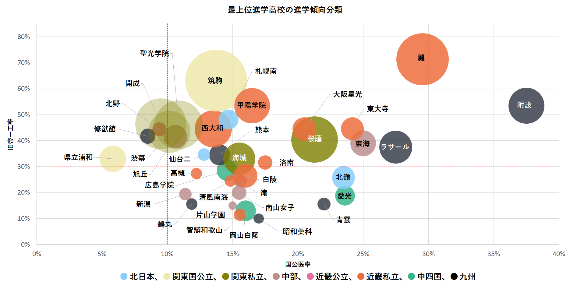 ã‚°ãƒ©ãƒ•ï¼šãƒˆãƒƒãƒ—é€²å¦æ ¡ã®åºåˆ—ã¨å‚¾å‘分類