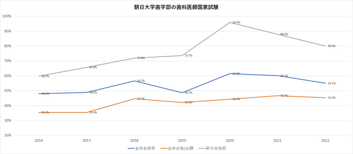 ã‚°ãƒ©ãƒ•ï¼šæœæ—¥å¤§å¦æ¯å¦éƒ¨ã®æ¯ç§‘åŒ»å¸«å›½å®¶è©¦é¨“åˆæ ¼çއ
