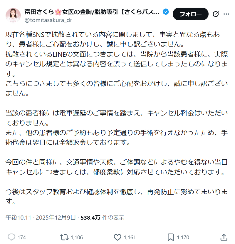 どうやら、無能なスタッフが勝手に送ってしまったようで、スタッフの教育を徹底すると綴った。