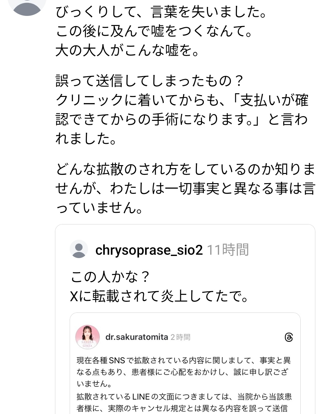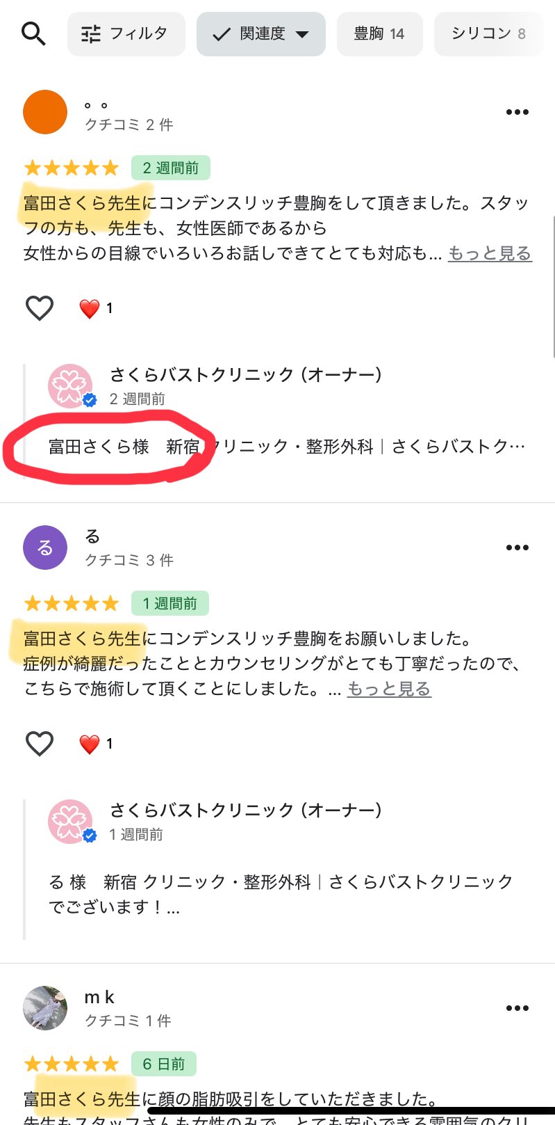 生粋の外科医であり、手術に専念するために、口コミの喚起、口コミへの返信は同一業者に委託している。そのため、上記のような間違いが起きてしまうが、これは致し方のないことと思われる。